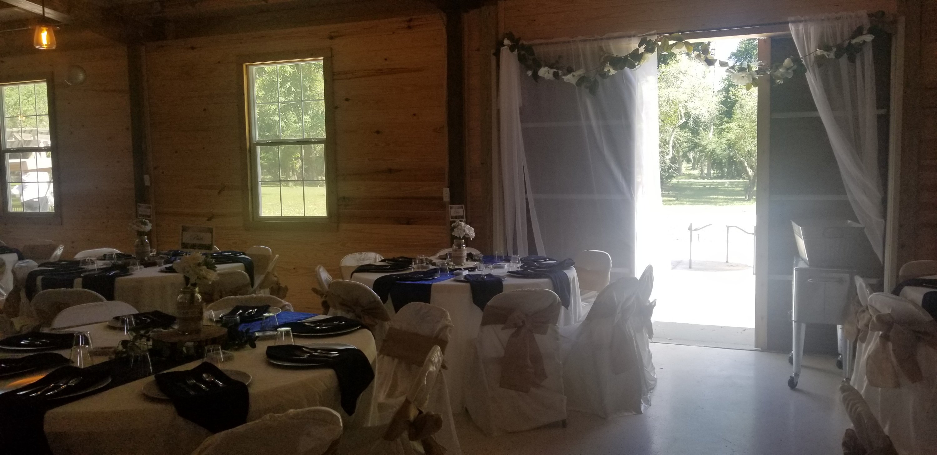 Take a look at the pictures in the gallery, but this is a venue you must see in person! Our barn is cool, spacious, and beautiful, surrounded by woods and wildlife. As a bonus, we won’t rush you on your special day; in fact, we give you the day before to decorate!